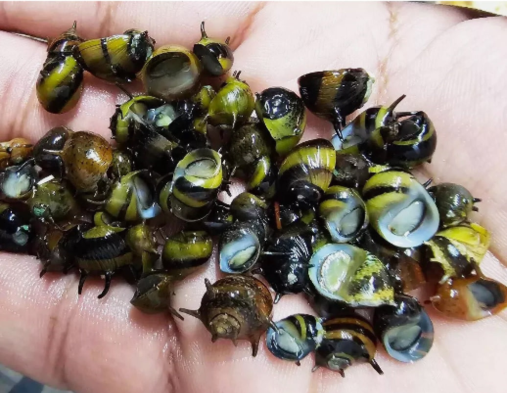 The Horn Snail is a small member of the Nerite algae-eating group of snails, and has an attractive black and yellow pattern with random protruding 'horns' over the shell. These snails are great for planted community aquaria, where no predatory fish are present (i.e. loaches, pufferfish etc). Despite their diminutive size, these little gastropods are amazingly efficient algae grazers and so are a real benefit to the aquarist. Your prized plants, such as slow growing Anubias species, will benefit from the snails gentle grazing habits as they will help to prevent the build up of otherwise difficult-to-remove algae from their leaves. Only dead or decaying plant matter will be eaten.